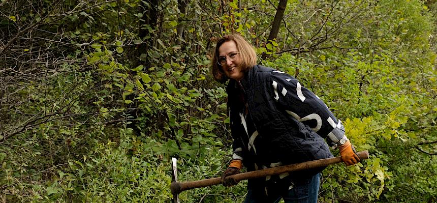 Wieder ließ uns das Wetter - bei wirklich schlechter Vorhersage - nicht im Stich. Statt angesagtem Dauerregen nieselte es ganz kurz zwischendurch, was bei der Arbeit nicht störte. Bei der Entbuschung im Saugraben waren 26 Erwachsene mit dabei, am Nachmittag 26 Erwachsene und ein Kind. Voll motiviert packten diesmal eine 5-köpfige Gruppe der UNIQA Österreich Versicherungen AG (Value Train Krankenversicherung) mit Leiter Franz Schaden sowie eine 13-köpfige Gruppe der Erste Group Services GmbH (Finance Subsidiaries Leasing) mit Leiter Johannes Tretzmüller an. Krampen wurden fleißig geschwungen und zahlreiche Liguster ausgehackt. Eichen und Haseln ging es mit den Scheren ans Holz. Am Ende des Tages war der obere Teil des Saugrabens perfekt entbuscht - sprich alle Gebüsche entfernt, die nicht stehen bleiben sollten.