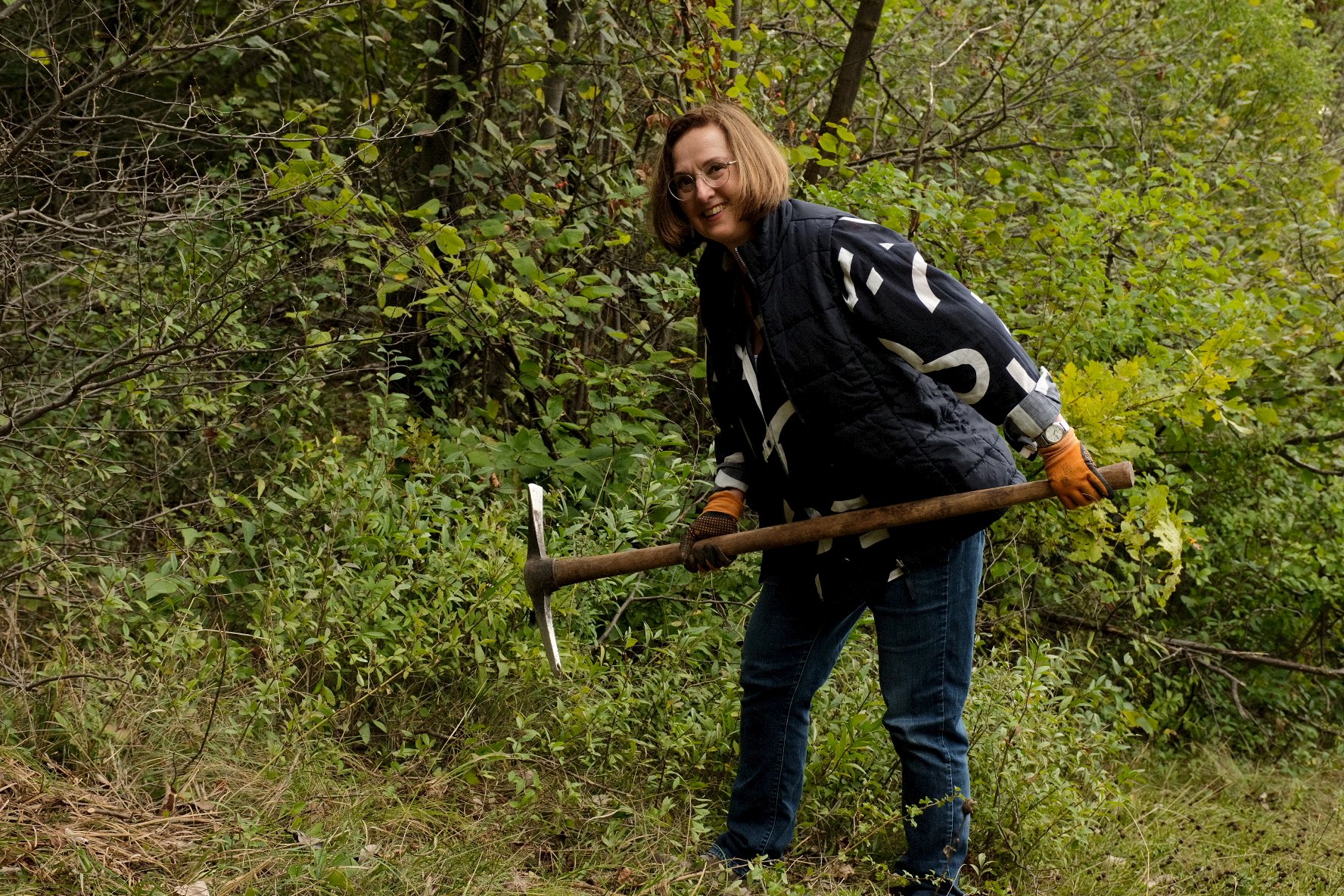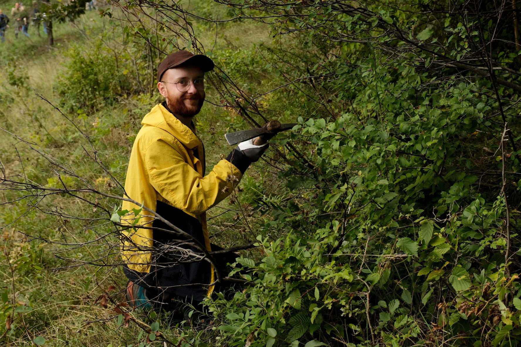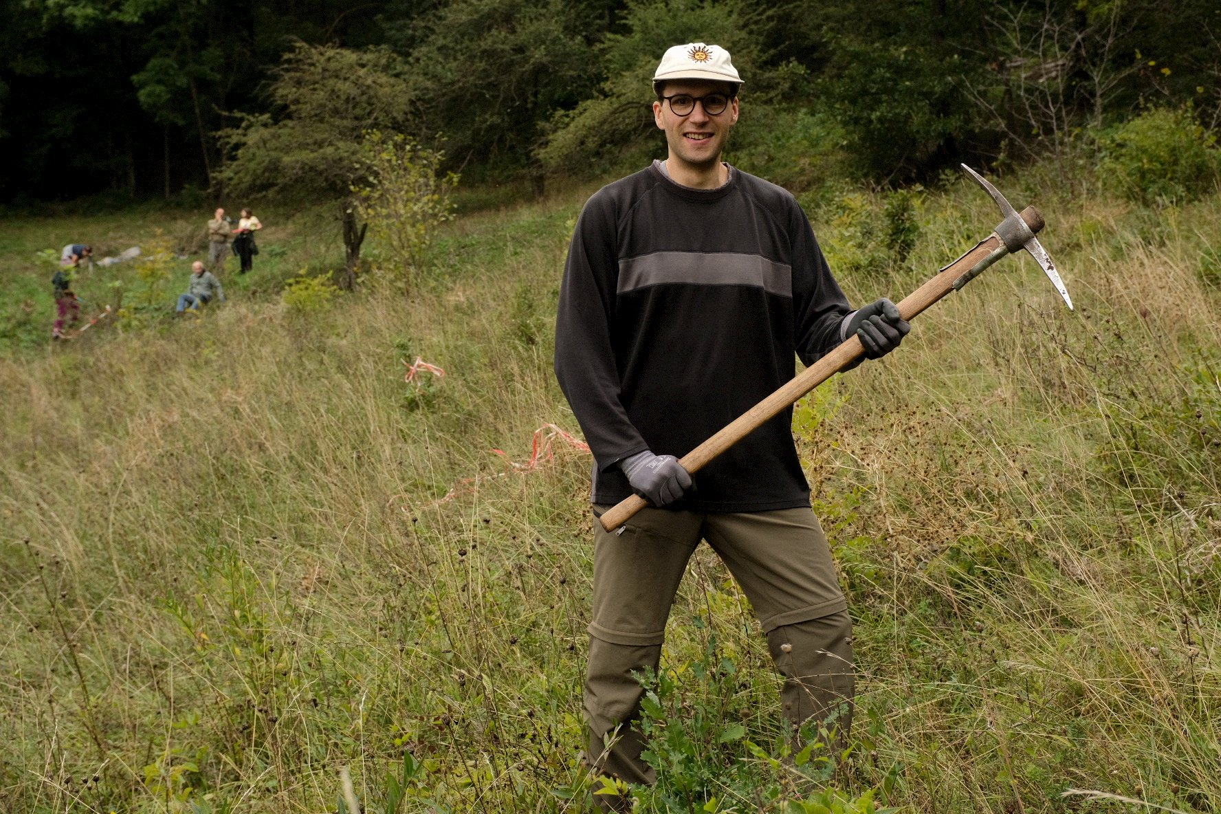Wieder ließ uns das Wetter - bei wirklich schlechter Vorhersage - nicht im Stich. Statt angesagtem Dauerregen nieselte es ganz kurz zwischendurch, was bei der Arbeit nicht störte. Bei der Entbuschung im Saugraben waren 26 Erwachsene mit dabei, am Nachmittag 26 Erwachsene und ein Kind. Voll motiviert packten diesmal eine 5-köpfige Gruppe der UNIQA Österreich Versicherungen AG (Value Train Krankenversicherung) mit Leiter Franz Schaden sowie eine 13-köpfige Gruppe der Erste Group Services GmbH (Finance Subsidiaries Leasing) mit Leiter Johannes Tretzmüller an. Krampen wurden fleißig geschwungen und zahlreiche Liguster ausgehackt. Eichen und Haseln ging es mit den Scheren ans Holz. Am Ende des Tages war der obere Teil des Saugrabens perfekt entbuscht - sprich alle Gebüsche entfernt, die nicht stehen bleiben sollten.