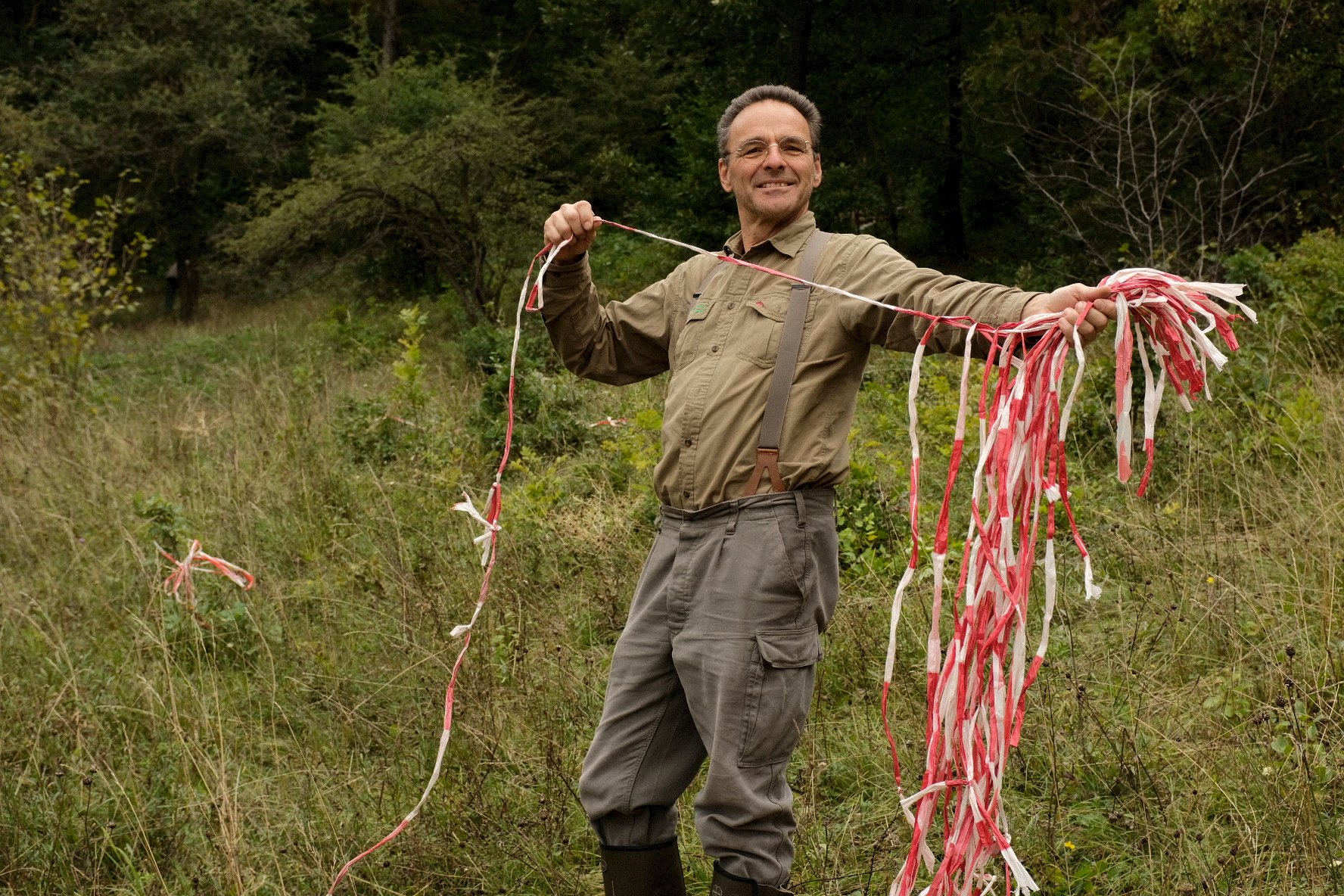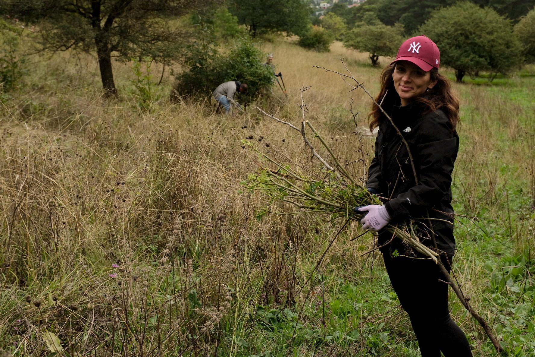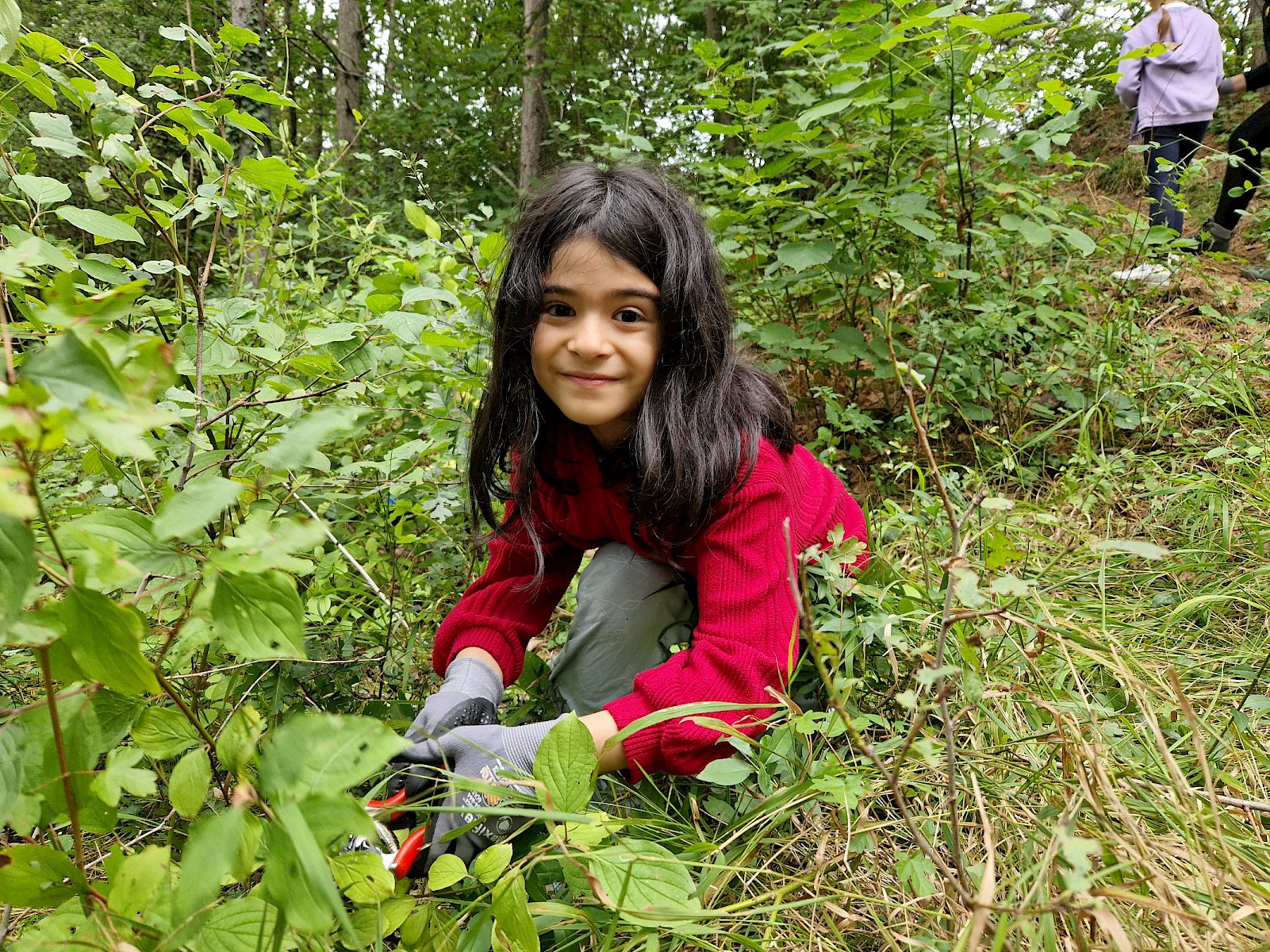 Auch die Lehrer:innen und Schüler:innen der 1b, 1c und 2c der Volksschule Sebastian Kneipp-Gasse und die 1D, 1F und 2E des BG & BRG Perchtoldsdorf ließen sich vom Wetterbericht nicht abschrecken und waren fleißig im Einsatz. Die 1F entbuschte am Nordhang des Saugrabens, die 1D und 2E setzten die Hecke, die den Südhang im Kröpfgraben vor unerwünschten Besuchen und Störungen abschirmt, zurück. Die 1b und 2b pflegten auf der Kleinen Heide, die 2c neben dem Wasserbehälter auf der Großen Heide. Dabei waren auch wieder viele tierische Bewohner zu entdecken wie das Weibchen einer Grünen Huschspinne (Micrommata virescens), eine Smaragdeidechse (Lacerta viridis) und die Raupe eines Schwalbenschwanzes (Papilio machaon) oder zumindest Spuren von ihnen wie die Häutungshaut einer Äskulapnatter (Zamenis longissimus).