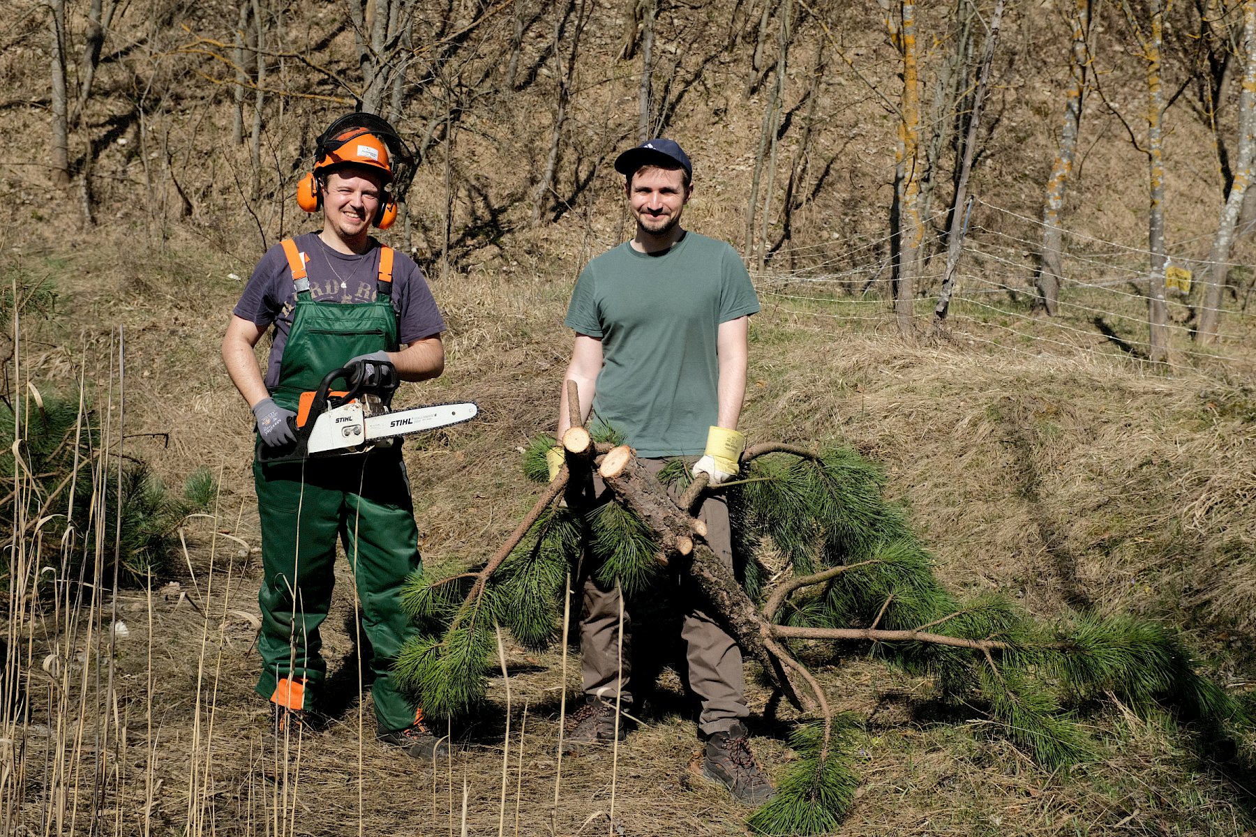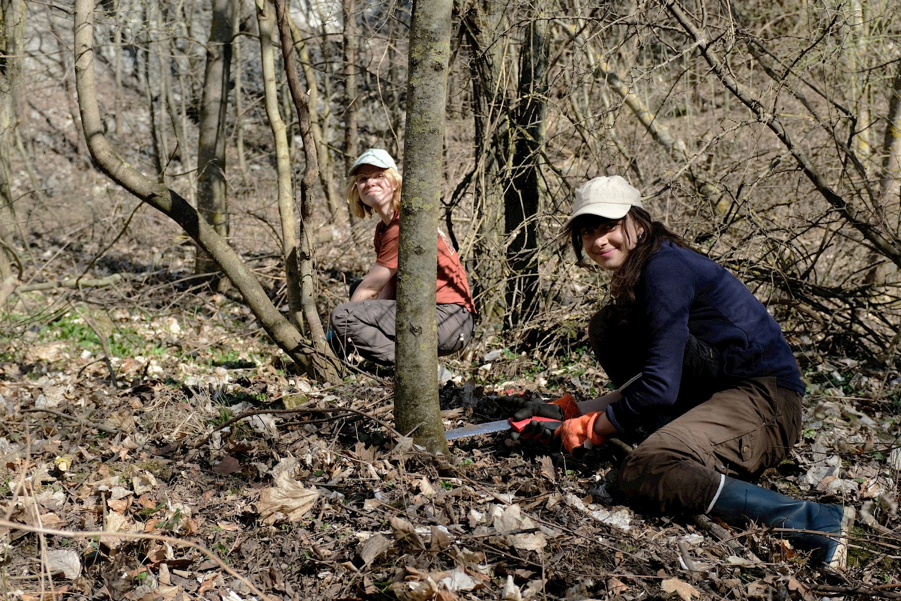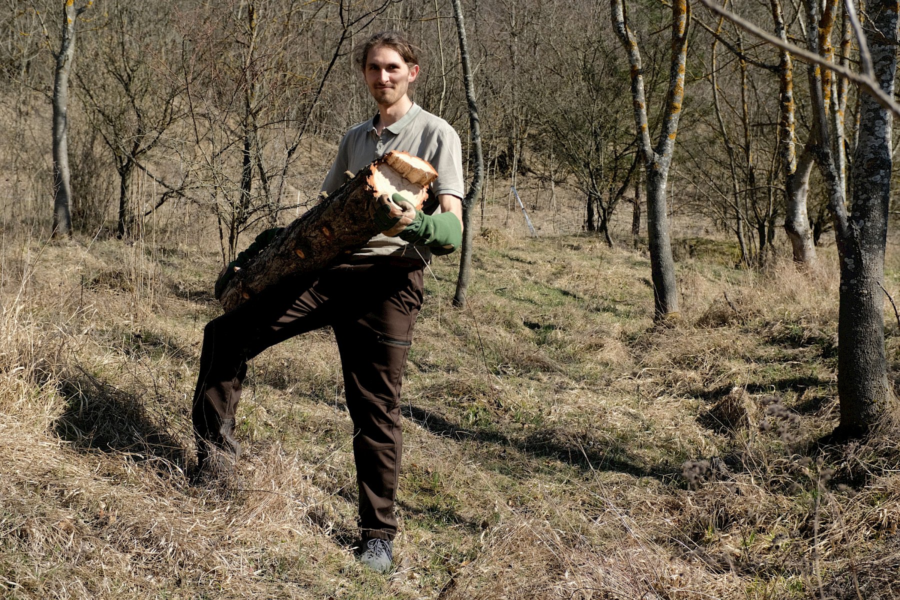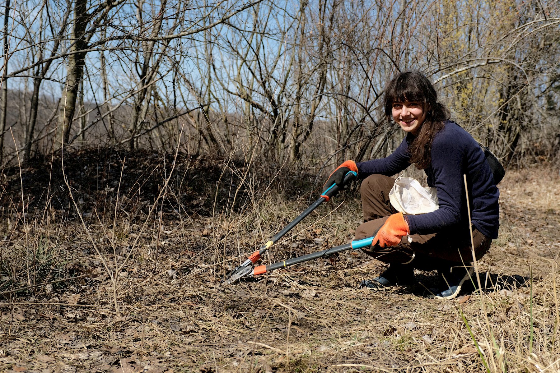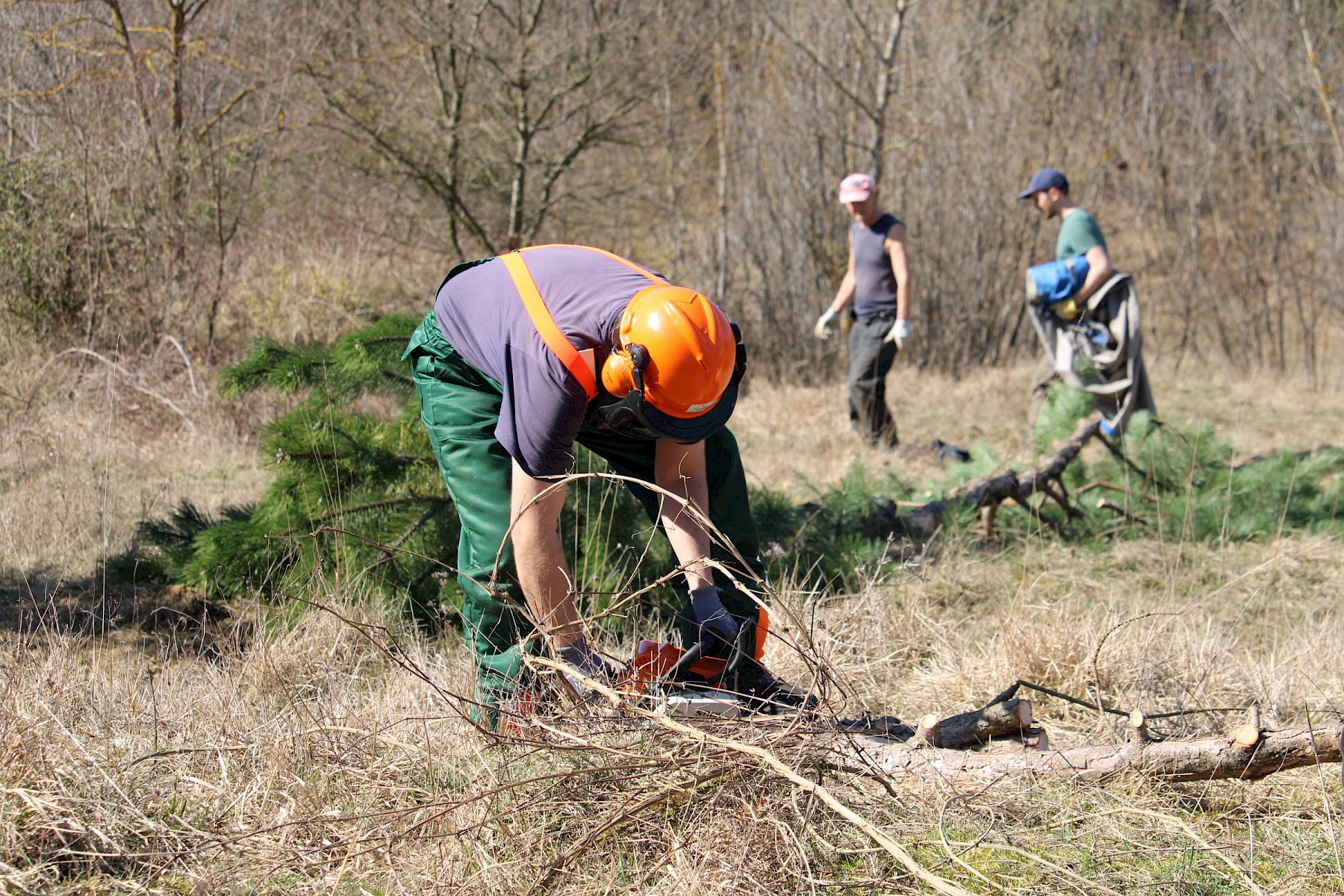 Während der Arbeiten am Teich machten sich verschiedene Gruppen daran, anderweitige Arbeiten im Gebiet zu erledigen. So wurden einzelne Gehölze entfernt, um die Landschaft für wärmeliebende Arten offen zu halten, Kies für einen zukünftigen Tümpel umgeschlichtet und einen kleinen Bestand des invasiven, nicht heimischen Japanischen Staudenknöterichs (Fallopia japonica) mittels Teichfolie zum Absterben zu bringen, wofür zuerst einzelne Gehölze entfernt werden mussten.