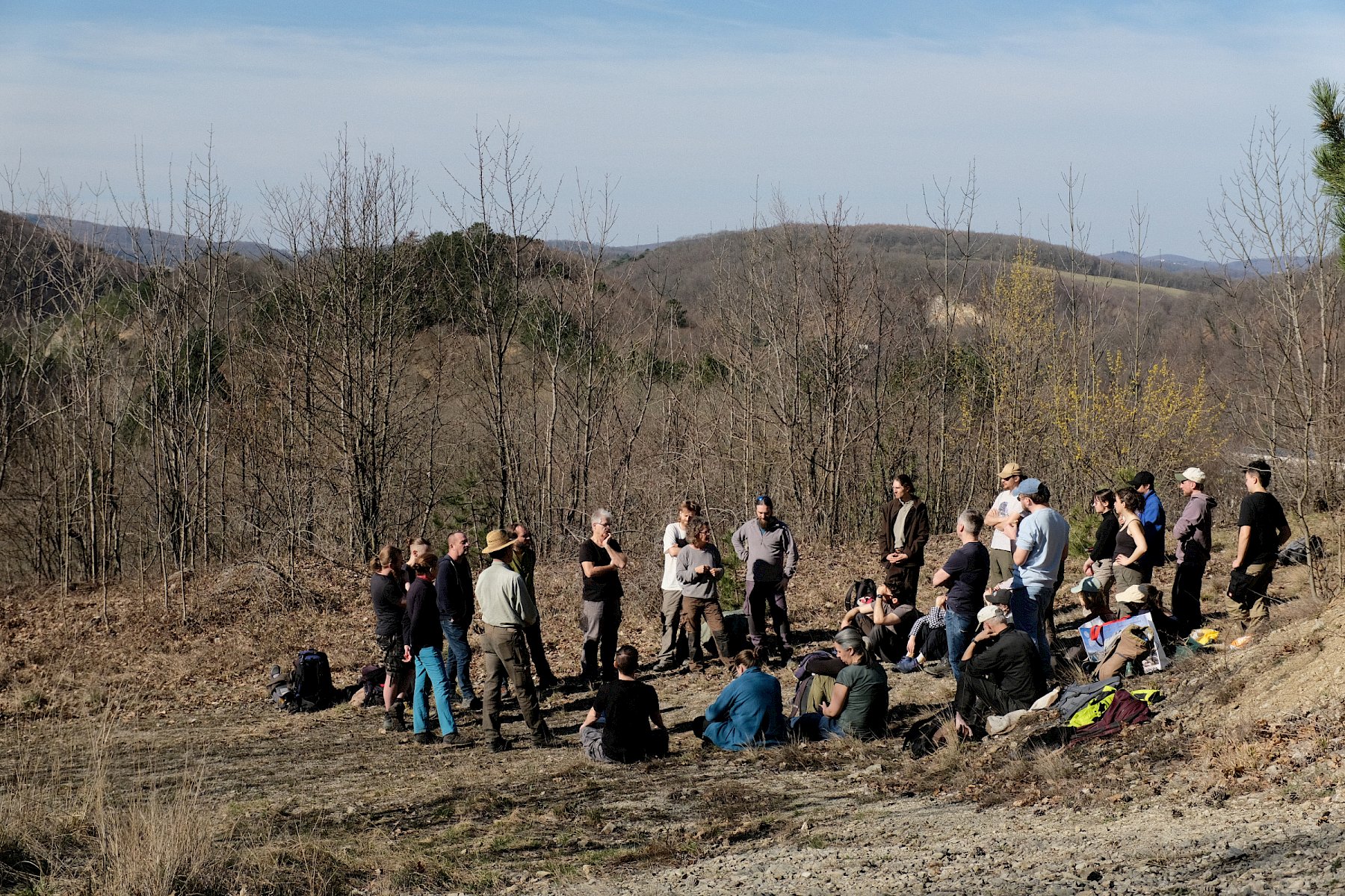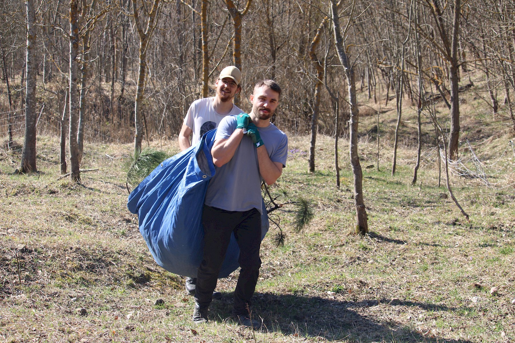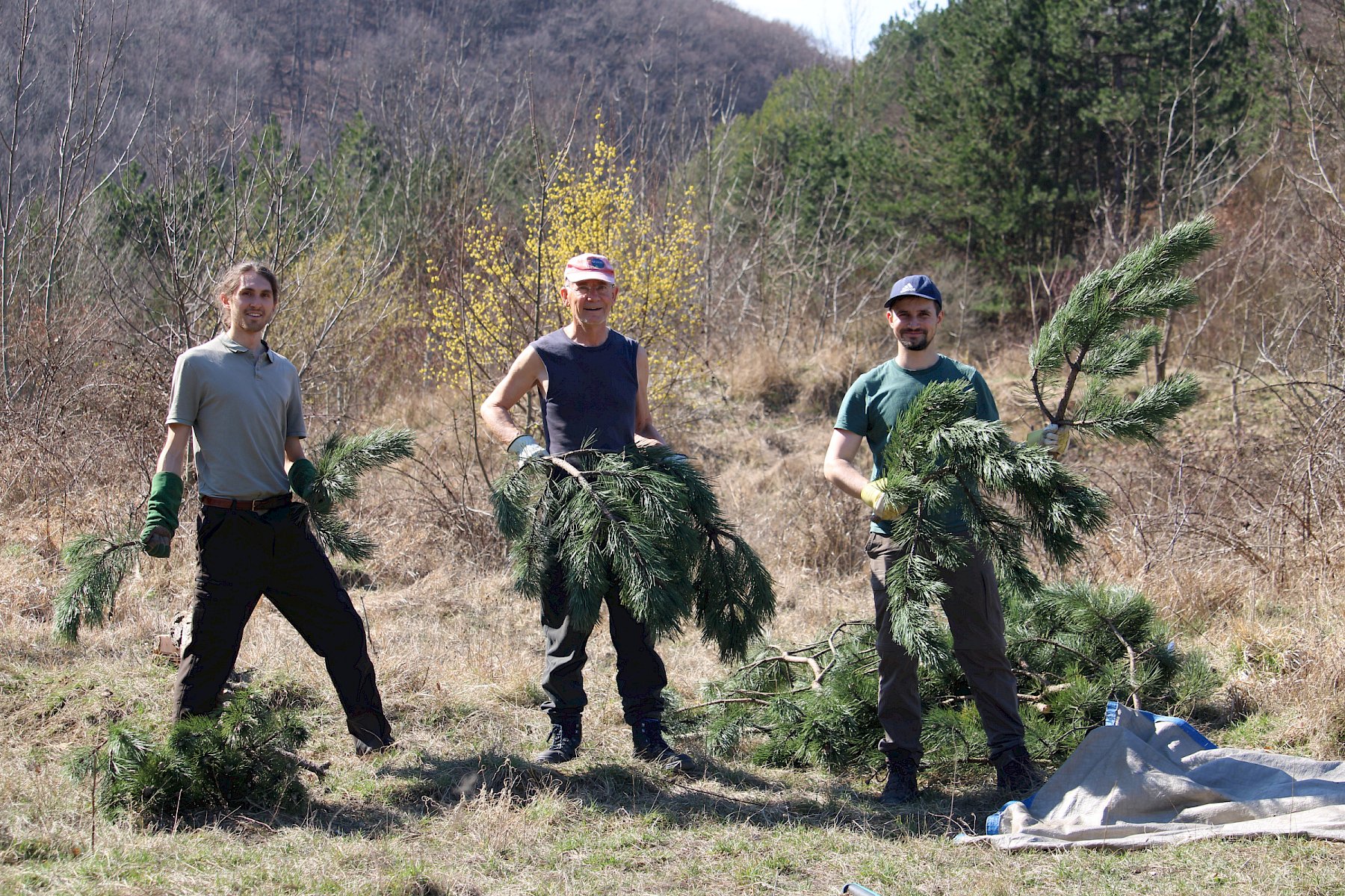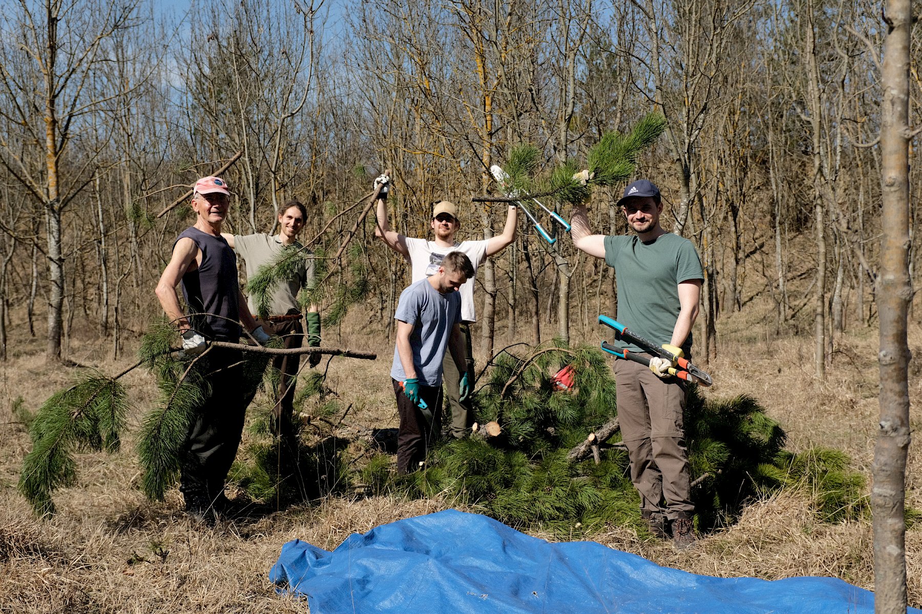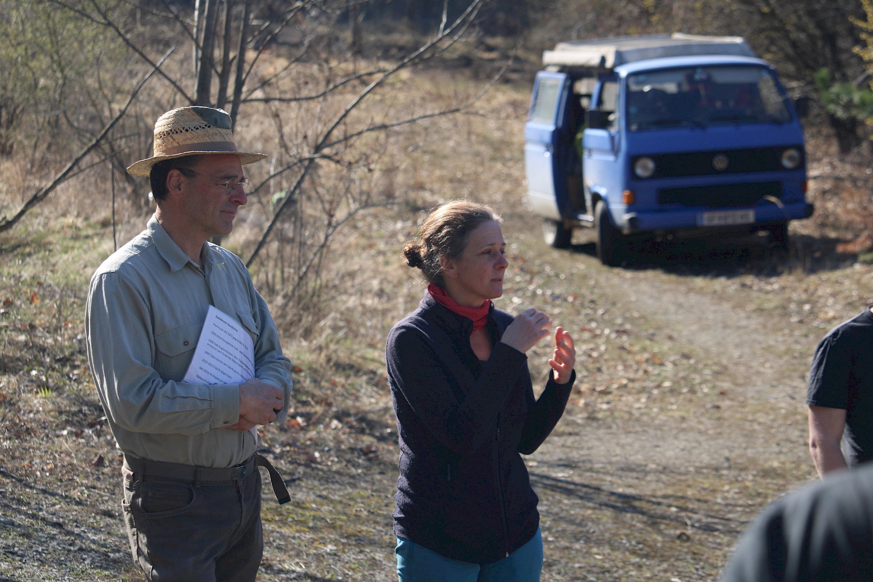 Während der Arbeiten am Teich machten sich verschiedene Gruppen daran, anderweitige Arbeiten im Gebiet zu erledigen. So wurden einzelne Gehölze entfernt, um die Landschaft für wärmeliebende Arten offen zu halten, Kies für einen zukünftigen Tümpel umgeschlichtet und einen kleinen Bestand des invasiven, nicht heimischen Japanischen Staudenknöterichs (Fallopia japonica) mittels Teichfolie zum Absterben zu bringen, wofür zuerst einzelne Gehölze entfernt werden mussten.