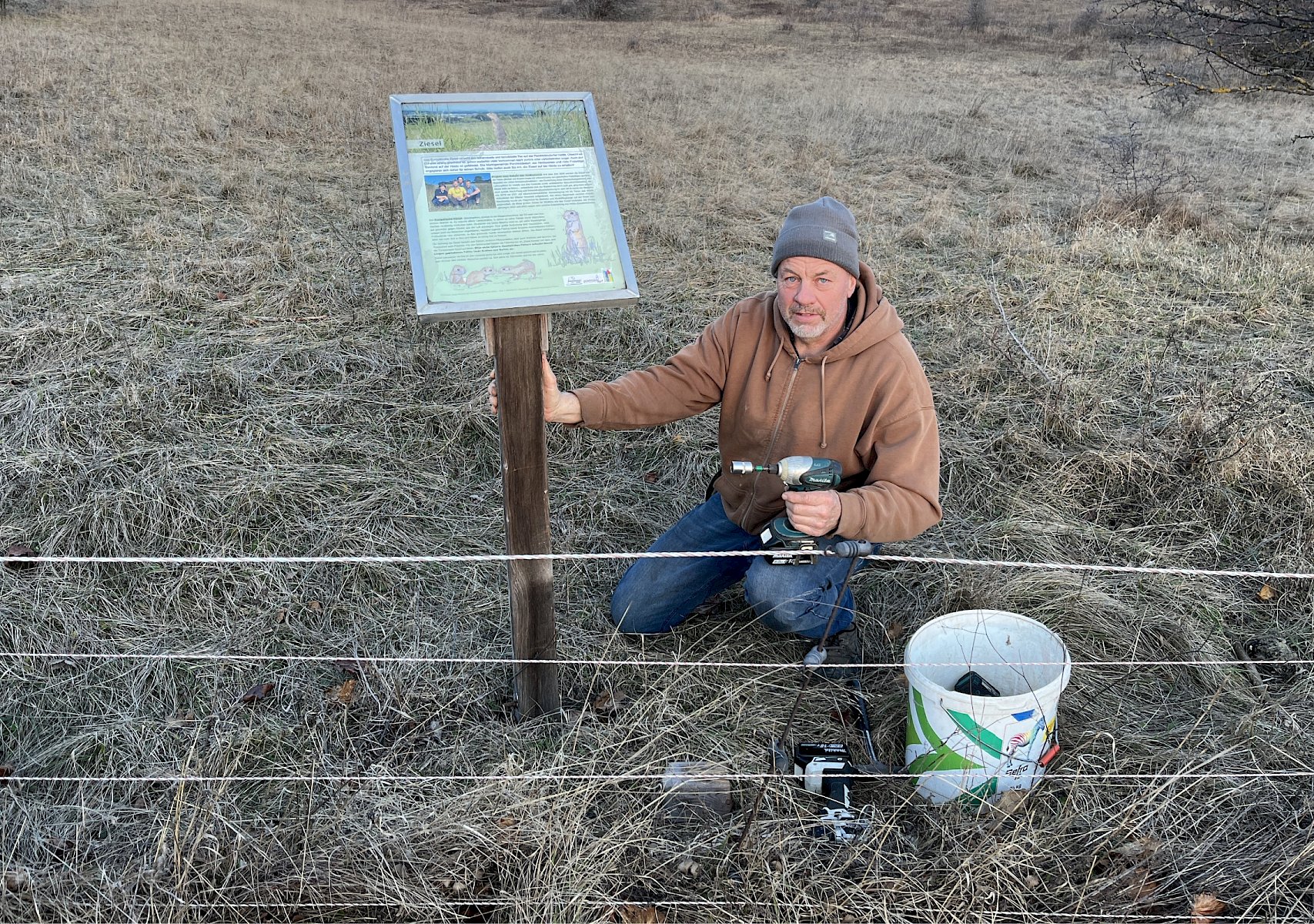 Während der Wintermonate waren die Lehrpfadtafeln abmontiert und sicher eingelagert worden, um mögliche Schäden zu Silvester oder durch Rodeln zu vermeiden. Mit dem warmen, sonnigen Wetter der nächsten Wochen werden Große Kuhschelle (Pulsatilla grandis), Frühlings-Adonis (Adonis vernalis) und die unscheinbareren einjährigen Pflänzchen auf offenen Böden wie Felsenkresse (Hornungia petraea) oder Hungerblümchen (Draba spp.) bald in voller Blüte stehen. Auch die ersten Ziesel-Männchen werden bald unterwegs sein, und das alljährliche Zieselmonitoring kann wieder beginnen.