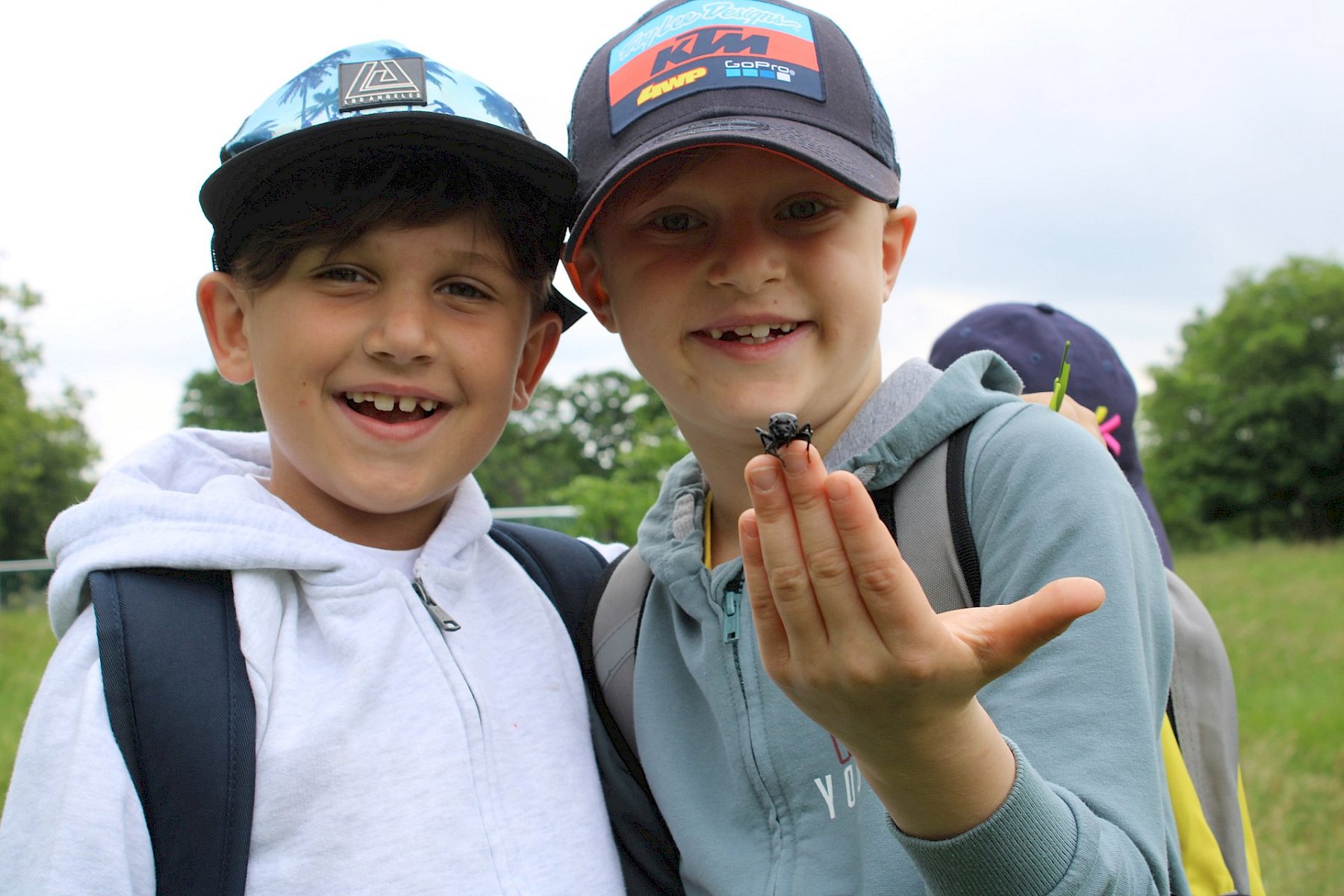 Beim Programm entdecken wir diese Vielfalt. Mit Becherlupen gehen wir auf die Suche nach Schmetterlingen, Wildbienen, Käfern, Heuschrecken und vielen anderen Tieren. Einige davon können wir vergrößert unter dem Mikroskop betrachten. Unsere Naturvermitler:innen erzählen spannende Geschichten rund um die gefundenen Arten.
